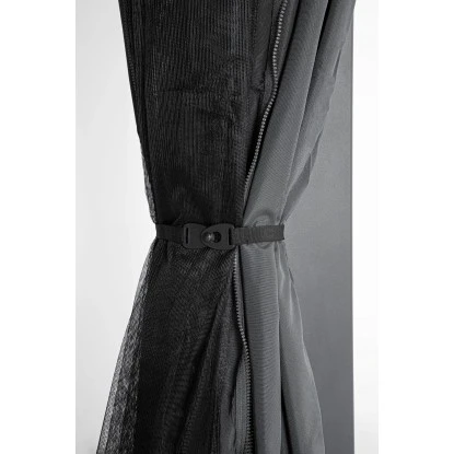 Der Bizzotto Vorhang für die Pergola der Serie Ocean bietet Ihnen einen dekorativen und praktischen Sichtschutz. Auch vor Wettereinflüssen wie Sonnenlicht und Wind schützt er zuverlässig. Durch die schlichte Optik in Anthrazit lässt sich das Zubehör zu sämtlichen Außenbereichen kombinieren. Seine Maße betragen 238 cm x 344 cm (H x B). Ebenfalls im Set enthalten ist ein Insektennetz, wodurch Sie vor verschiedenen Insekten wie Fliegen und Mücken geschützt sind.