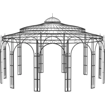 Opulente Größe, filigranes Design: Unter dem Dach vom Eleo Pavillon Toskana pulverbeschichtet in Schwarz haben Sie viel Platz auch für eine größere Anzahl Gäste. Mehr als fünf Meter spannt sich dieser Pavillon auf, und dabei wirkt er dennoch filigran. Gefertigt aus stabilem Schmiedeeisen trotzt Toskana Witterungen zuverlässig und ist somit ein hochwertiger und stabiler Pavillon, der für lange Jahre Ihren Garten verschönern wird.