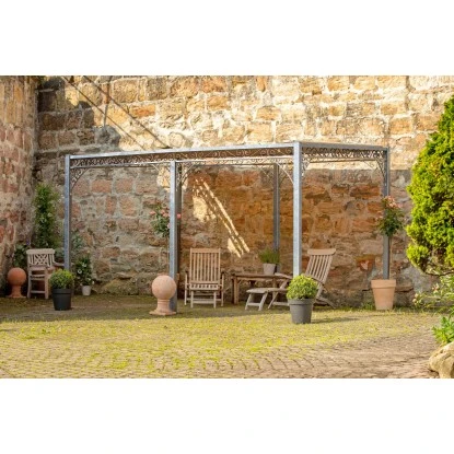 Überdacht und doch unter freiem Himmel: Die Eleo Pergola Sardegna pulverbeschichtet in Weiß lädt mit ihrem besonderen Reiz nicht nur an einem herrlichen Sommermorgen zum Verweilen ein, sondern eignet sich auch ideal um am Abend Gäste willkommen zu heißen. Freistehend oder an Ihr Haus angestellt kreiert die Pergola einen luftigen, klar umrissenen Raum innerhalb Ihrer Gartenanlage, in dem sich jeder wohlfühlen wird. Gefertigt ist Sardegna aus stabilem, witterungsbeständigem Schmiedeeisen.