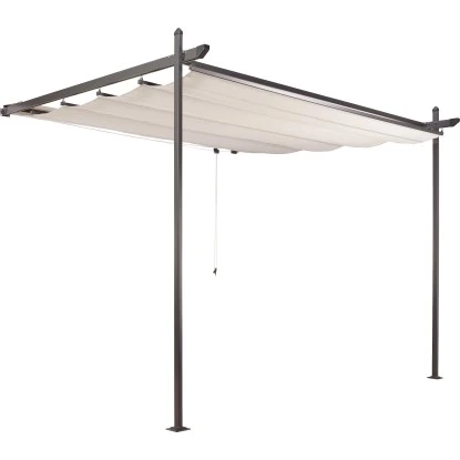 Gefertigt ist das Markisentuch aus 100 % Polyester. Mit einer Größe von 300 cm x 300 cm sorgt es für einen großzügigen Schattenwurf. Zur Reinigung kann der Stoff einfach trocken abgebürstet werden. Hartnäckige Verschmutzungen reinigen Sie mit einer Bürste und warmem Seifenwasser. Aufgrund des leichten Aufbaus können Sie die Pergola-Markise für den Winter ohne großen Aufwand ab- und im Sommer wieder aufbauen. Ansonsten ist die Faltmarkise im eingezogenen Zustand durch eine Abdeckung vor Witterung geschützt.