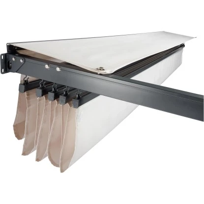 Das hochwertig verarbeitete Stahl-Gestell überzeugt mit einer herausragenden Qualität. Durch die einseitige Fixierung an der Hauswand ist für eine gute Standfestigkeit gesorgt. Somit ist die Terrassenüberdachung beständig gegen Wind und Wetter. Auf- und zuziehen lässt sich das Markisentuch über einen leichtläufigen Seilzug. Somit können Sie die Faltdachmarkise besonders bequem bedienen.