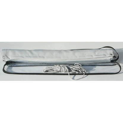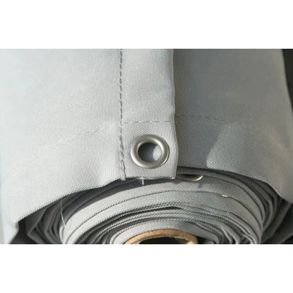 Dank der vorgefertigten Metallösen lässt sich die fertige Balkonverkleidung unkompliziert montieren. Die Ösen befinden sich an beiden Längsseiten, haben einen Innendurchmesser von Ø 10 mm und sind alle 24,5 cm gesetzt. Mit Hilfe der zwei 7 m langen Kordeln in passendem Silbergrau (im Lieferumfang enthalten) lässt sich die Balkonverkleidung einfach am Geländer befestigen.