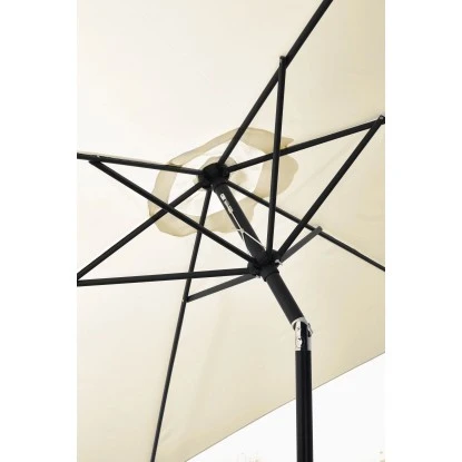 Die Kurbelmechanik ermöglicht Ihnen ein bequemes Öffnen und Schließen des Marktschirms. Im aufgespannten Zustand besitzt er einen Ø von 200 cm. Damit Sie den Schirm auch bei niedrigem Sonnenstand morgens und abends perfekt für einen optimalen Schattenplatz ausrichten können, lässt er sich am Mast abknicken bzw. neigen. Die maximale Höhe des Sonnenschirms beträgt 210 cm.