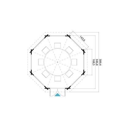 Der Pavillon Jamaica überzeugt durch seine großen Fensterfronten und die verglaste Doppeltür, die den Innenraum mit ausreichend Licht durchfluten und eine warme, einladende Atmosphäre schaffen. Die idealen Voraussetzungen für entspannte Momente und gesellige Anlässe in Ihrem Garten.
