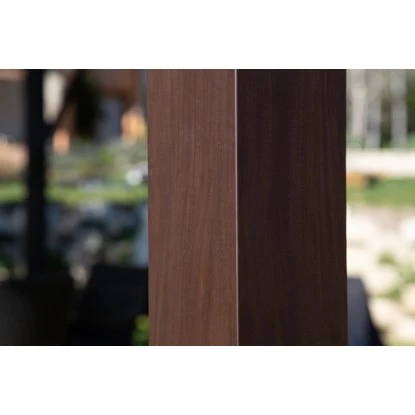 Der hochmoderne Aluminium Pavillon Modena mit integriertem Sonnensegel ist ein Highlight für jeden Garten. Der Pavillon besteht aus einer rostresistenten Aluminiumkonstruktion: sehr stabil, wartungsfrei und langlebig. Der Clou: Die täuschend echtwirkende Holzoptik verleiht dem Pavillon ein ausgesprochen edles Design und passt sich optisch in jeden Garten oder jede Terrasse an.
