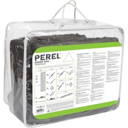 Schützen Sie sich mit diesem anthrazitfarbenen Sonnensegel von Perel vor den schädlichen UV-Strahlen der Sonne. Das 180 g / m² Polyestersegel ist wasserdurchlässig. An jeder Ecke befindet sich ein D-Ring aus Edelstahl, mit dem Sie das Segel befestigen können. Der Sonnenschutz ist auch maschinenwaschbar.