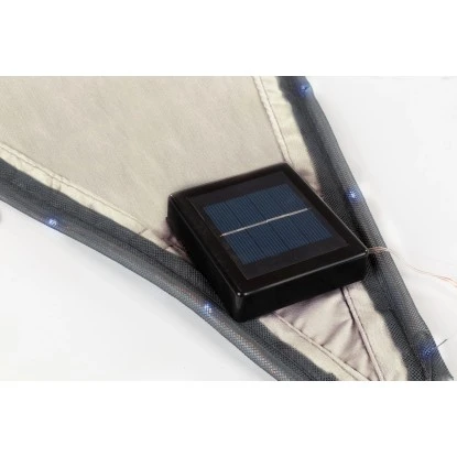 Das Perel Sonnensegel mit LED-Beleuchtung bietet tagsüber den perfekten Sonnenschutz und schafft abends eine wunderbare Atmosphäre durch 107 integrierte LEDs. Das inegrierte Solarmodul benötigt weder Kabel noch Batterien. Dank des Dämmerungssensors schalten sich die LEDs nachts automatisch ein (Sensor kann ausgeschaltet werden).Insgesamt sind 2 Leuchtmodi vorhanden: Dauerhaft leuchtend und Blinken. Das Sonnensegel ist wasserabweisend und strapazierfähig dank der Verstärkungen an den Nähten und Kanten. Ebenfalls sind Befestigungsösen aus Edelstahl vorhanden.