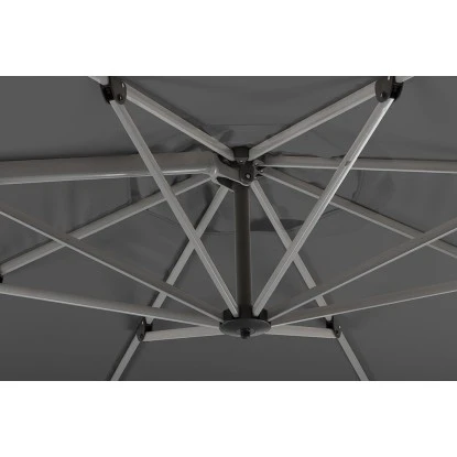 In der Verarbeitung und Materialauswahl weiß der Schirm durch Mast und Streben aus leichtem, aber stabilem Aluminium zu überzeugen. Die widerstandsfähige Bespannung aus 100 % Polyester-Gewebe (200 g/m²) ist robust, abnehmbar und waschbar und zeichnet sich zudem durch eine sehr gute Lichtechtheit aus, wodurch das Material auch bei starker Sonneneinstrahlung kaum ausbleicht. Mit dem Lichtschutzfaktor des Schirms von UV 80 können Sie die Sonnentage unbeschwert genießen.