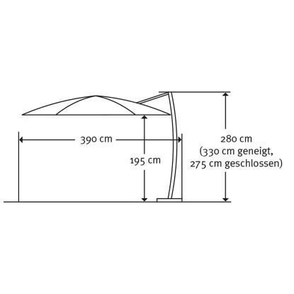 Mittels einer Kurbelmechanik lässt sich der Ampelschirm bequem öffnen und schließen. Aufgespannt besitzt er einen Ø von 350 cm. Dank seiner zahlreichen Funktionen können Sie den Schirm gezielt für einen optimalen Schattenplatz ausrichten. Er lässt sich um 360° drehen sowie neigen. Die Höhe des Sonnenschirms beträgt maximal 280 cm.