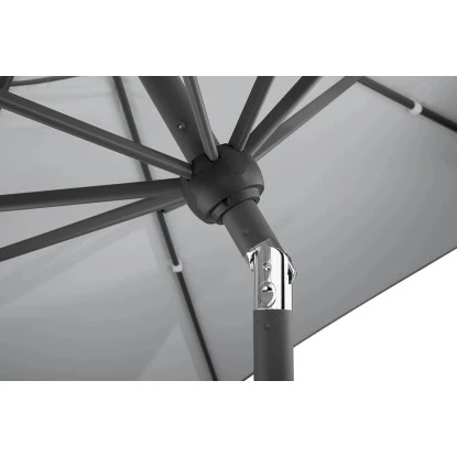 Dank der Kurbelmechanik können Sie den Marktschirm bequem öffnen und schließen. Im aufgespannten Zustand besitzt er einen Ø von 300 cm. Um den Schirm auch bei niedrigem Sonnenstand morgens und abends perfekt für einen idealen Schattenplatz ausrichten zu können, lässt er sich am Mast abknicken bzw. neigen. Die maximale Höhe des Sonnenschirms beträgt 260 cm.