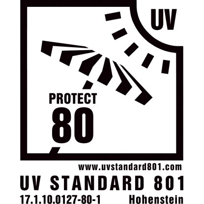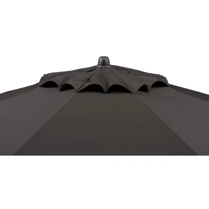 Dieser Sonnenschirm ist ein runder Schirm in der Größe von ca. Ø 360 cm. Die Bespannung hat einen großen air-vent (Luftauslass) und besteht aus 100 % Polyester. Sie hat keinen Volant und wurde mit einer zarten Oberflächenstruktur versehen, was dem Schirm eine moderne und elegante Note verleiht. Sie ist mit einer Stärke von 220 g/m² sehr widerstandsfähig und verrottungsfest. Zudem verfügt sie über eine wasserabstoßende Imprägnierung, wodurch Sie auch bei einem leichten Schauer keine Sorge haben müssen, nass zu werden. Gemäß dem UV Standard 801 von Hohenstein liegt der UV-Schutz für diesen Schirm bei 80, womit Sie exzellent vor der direkten Sonneneinstrahlung geschützt sind.