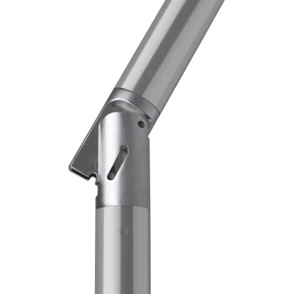 Das Gestell hat eine silbergraue Pulverbeschichtung. Der Stock hat einen stabilen Durchmesser von ca. 38 mm und ist zweiteilig, wodurch Sie den Schirm problemlos auseinanderbauen und über den Winter platzsparend einlagern können. Mithilfe der integrierten Kurbel lässt sich der Schirm ohne großen Kraftaufwand Öffnen und Schließen. Durch einfaches „Weiterdrehen“ der Kurbel knickt der Schirm und bietet damit optimalen Schatten. Die Gesamthöhe des aufgestellten Schirmes beträgt ca. 250 cm, mit einer Durchgangshöhe von ca. 205 cm. Im geknickten Zustand beträgt die Gesamthöhe ca. 255 cm.