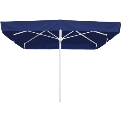 Die Bespannung ist zudem wasserabstoßend imprägniert und beschichtet, so dass sie nahezu wasserdicht ist. Dies ist vor allem für die Gastronomie von Vorteil, da Sie keine Bedenken haben müssen, dass Ihre Gäste bei einem kurzen Regenschauer nass werden. Das Gestell besteht aus einem pulverbeschichtetem Aluminiumstock und eloxierten Streben. Der Stock ist zweiteilig und hat einen starken Durchmesser von ca. 55 mm. Die Streben sind bei Bedarf einzeln auswechselbar. Außerdem verfügt der Schirm Quadro über einen Seilzug mit Selbstarretierung, so wird kein zusätzlicher Sicherungssplint benötigt. Um einen sicheren Stand zu gewährleisten sollte ein Schirmständer mit einem Mindestgewicht von ca. 55 kg verwendet werden.