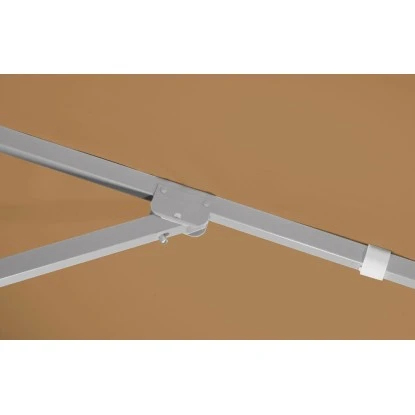 Das Gestell besteht aus einem pulverbeschichtetem Aluminiumstock und eloxierten Streben. Der Stock ist zweiteilig und hat einen starken Durchmesser von ca. 55 mm. Die Streben sind bei Bedarf einzeln auswechselbar. Außerdem verfügt der Schirm Quadro über einen Seilzug mit Selbstarretierung, so wird kein zusätzlicher Sicherungssplint benötigt. Die Gesamthöhe des Schirmes beträgt ca. 295 cm und hat eine angenehme Durchgangshöhe von ca. 223 cm.