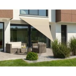 Das dreieckige Sonnensegel hat ein Maß von ca. 400 cm x 400 cm x 300 cm und ist damit ideal um eine große Sitzecke zu beschatten. Gleichzeitig wird Ihnen ein UV-Schutz von ca. 50 % geboten.