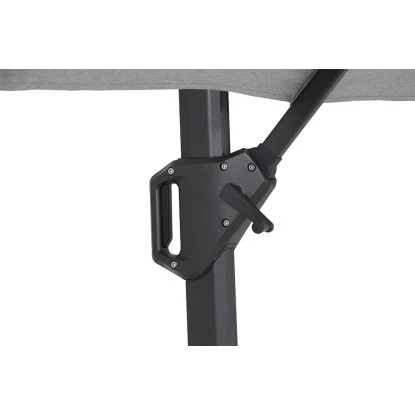 Dank der Kurbelmechanik können Sie den Ampelschirm bequem öffnen und schließen. Im aufgespannten Zustand besitzt er eine Größe von 350 cm in der Breite und 350 cm in der Tiefe. Um den Schirm gezielt für einen idealen Schattenplatz ausrichten zu können, lässt er sich neigen sowie um 360° drehen. Die Höhe des Sonnenschirms beträgt maximal 268 cm.