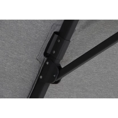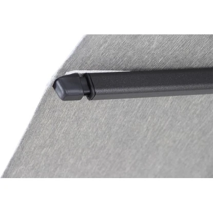 Der Mast und die Streben des Schirms aus leichtem, aber stabilem Aluminium überzeugen mit höchster Verarbeitungsqualität. Dank des Mastdurchmessers von 86 mm hält er auch widrigsten Witterungsbedingungen problemlos stand. Die widerstandsfähige Bespannung aus 100 % Polyester-Gewebe (240 g/m²) ist robust, abnehm- und waschbar. Dank des Lichtschutzfaktors von UV 50+ können Sie den Sommer unbeschwert genießen.