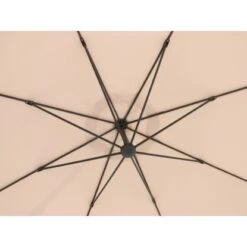 Der Mast und die Streben des Schirms sind aus leichtem, aber stabilem Aluminium gefertigt und exzellent verarbeitet. Dank des Mastdurchmessers von 78 mm hält er auch widrigsten Witterungsbedingungen problemlos stand. Die widerstandsfähige Bespannung aus 100 % Polyester-Gewebe (240 g/m²) ist robust, abnehmbar und waschbar. Außerdem zeichnet sie sich durch eine vorzügliche Lichtechtheit aus, was bedeutet, dass das Material auch bei starker Sonneneinstrahlung nicht ausbleicht. Mit dem Lichtschutzfaktor des Schirms von UV 50+ können Sie die Sonnentage unbeschwert genießen.