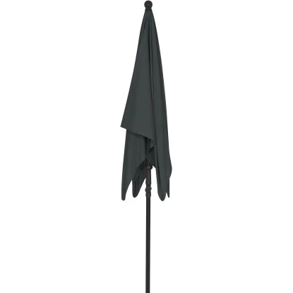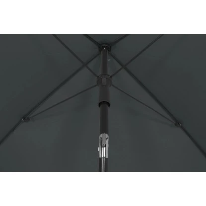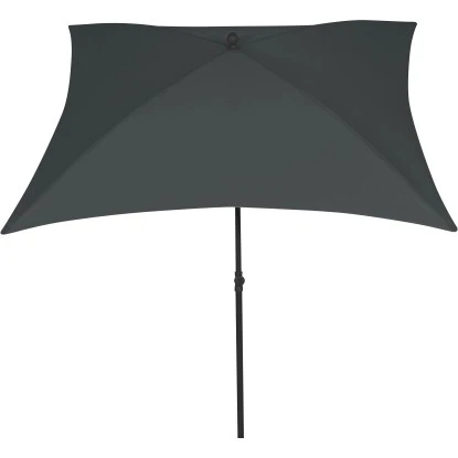 Dank des Schiebers können Sie den Marktschirm bequem öffnen und schließen. Im aufgespannten Zustand besitzt er eine Größe von 180 cm in der Breite und 180 cm in der Tiefe. Damit Sie den Schirm auch bei niedrigem Sonnenstand morgens und abends perfekt für einen idealen Schattenplatz ausrichten können, lässt er sich am Mast abknicken bzw. neigen. Die maximale Höhe des Sonnenschirms beträgt 195 cm.