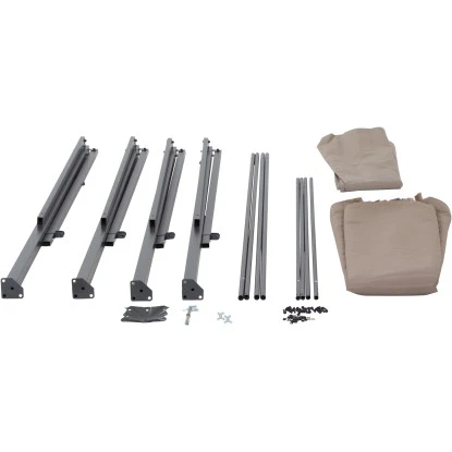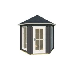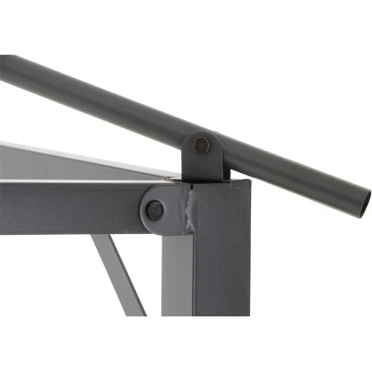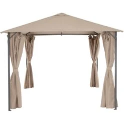 Der Pavillon Phoenix besteht aus einem pulverbeschichtetem Stahlgestell in Anthrazit. Die eckigen Profile des stabilen Gestells haben das Maß 40 mm x 40 mm. Das Dach ist aus PU-beschichtetem Polyester in Taupe gefertigt und hat eine Durchgangshöhe von 195 cm. Es verfügt über einen Lüftungsschlitz in der Spitze, der für optimale Luftzirkulation sorgt. Der Pavillon Levino wird direkt mit vier farblich passenden Seitenteilen aus Polyester geliefert, die sich mittig mit Reißverschlüssen schließen oder dekorativ mit Haltebändern in den Ecken binden lassen.