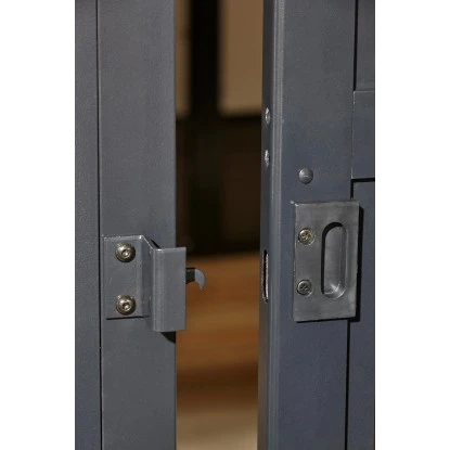 Kontrollierbare Durchlüftung durch 12 Fenster (eins in jedem Wandelement – 94×74 cm BxH) bestehend aus je einem Moskitonetz sowie einem reißfesten PVC-Folien-Fenster, welches zur Durchlüftung einfach nach unten geschoben und mit zwei Handgriffen zum Reinigen herausgenommen wird. Der Aufbau erfolgt durch mindestens 2 Personen mit Hilfe von handelsüblichen Werkzeugen sowie einer detaillierten Schritt-für-Schritt Anleitung. Die Schiebetüren können flexibel auf allen Seiten montiert werden. Zu beachten ist, dass je Seite nur eine Tür eingesetzt werden kann.