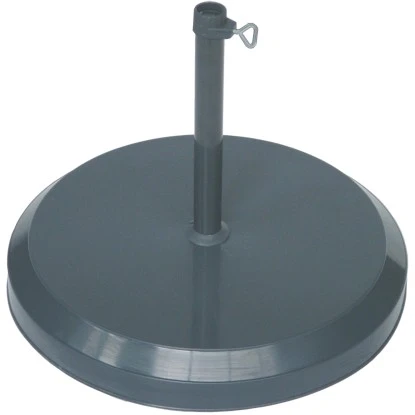 Der elegante anthrazitfarbene Schirmständer besteht aus Kunststoff und ist mit Beton gefüllt. Das Stahlrohr für den Schirm ist abschraubbar und mit Kunststoff beschichtet. Der Ständer ist 18 kg schwer und für Schirmstöcke bis 25 mm geeignet.